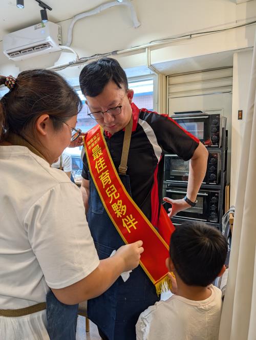 「親職協力,幸福加乘」 方案在充滿溫馨與儀式感的成果會中圓滿收官!昨天的活動將學習化為行動,家庭在親子共廚中透過抽籤分工實踐了家務協作,煮出了合作的美味。最感動人心的,是夫妻雙方雙向互頒 「最佳育兒夥伴」 值星帶,象徵著彼此的肯定與加冕;而在精心時刻讀信環節,有位爸爸的真情流露更是讓全場動容,他深刻感謝太太付出大量的精神與心力照顧家庭,強調彼此應互相支持和鼓勵,時刻感謝對方的付出。活動最後,每戶家庭獲贈印有方案名稱的 「共親職紀念圍裙」,鼓勵大家將這份感動與共同分擔的精神延續到日常生活中。活動結束後,許多媽媽立刻詢問明年是否還會舉辦類似方案,顯見本方案已對家庭產生了巨大且持久的正向影響!